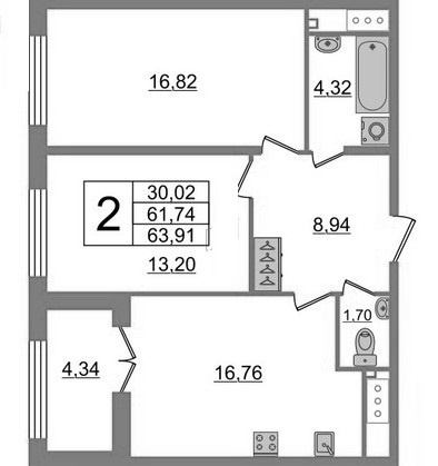 S общая, м² 61.79